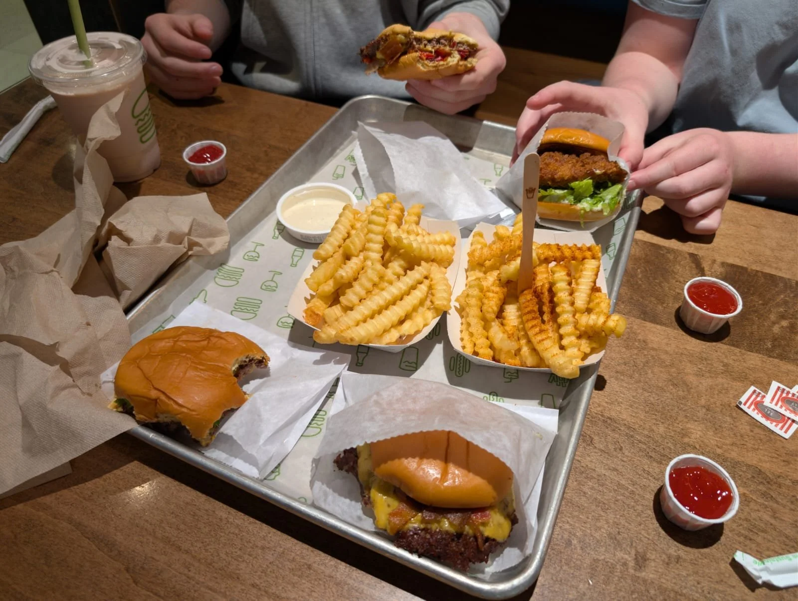 We lopen naar buiten en daar blijken allerlei mensen voor de deur van het stadion te staan. We slaan chatgpt er eens op na en het blijkt zo te zijn dat er vanavond om 19.07 uur een wedstrijd begint tegen de Boston Red sox. Wij verbazen ons over dag en tijd. Maar leren dat honkballers erg veeeeel wedstrijden spelen in korte tijd. 162 in 180 dagen. Echt bizar zoveel. En die voetballers maar zeuren dat ze moe zijn. Door dat schema spelen ze 4 dagen op rij tegen elkaar. De reisafstanden zijn te groot om het anders te doen. Leuk hoor om zo wat meer te weten over een sport waar we eigenlijk niets van weten. Ondertussen is het lunchtijd geworden en gaan we een belofte aan Stijn inlossen. Hij wilde graag naar de Shake Shack. Dus Google maps open en op zoek. Nu blijkt dat de dichtstbijzijnde op Union Station zit, dus terug naar waar we begonnen.